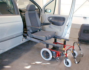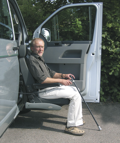 Basamento girevole e abbassabile Turny HD, con rotazione manuale ed escursione totale di 480mm. Il Turny è un basamento girevole e abbassabile che permette di ruotare il sedile dell’auto per poi farlo fuoriuscire completamente all’esterno, favorendo il trasferimento da o verso una sedia a rotelle. E’ dotato di un sistema di rotazione meccanica del sedile mentre la gestione del sollevamento e della discesa è elettrica e comandata attraverso un apposito telecomando. Questo prodotto è particolarmente indicato per veicoli come Fiat Ducato o MB Sprinter in quanto hanno la seduta molto alta da terra. Può essere installato sul sedile anteriore o sul sedile posteriore della fila centrale di molte vetture. Il basamento TURNY HD è certificato CE ed ha una capacità di sollevamento fino a 150 Kg. E’ inoltre stato testato a livello meccanico con prove di carico, di trazione, di pressione e nel crash test. Sono disponibili per alcuni veicoli anche dei kit di staffe specifiche per l'installazione del basamento utilizzando i fori originali del veicolo.