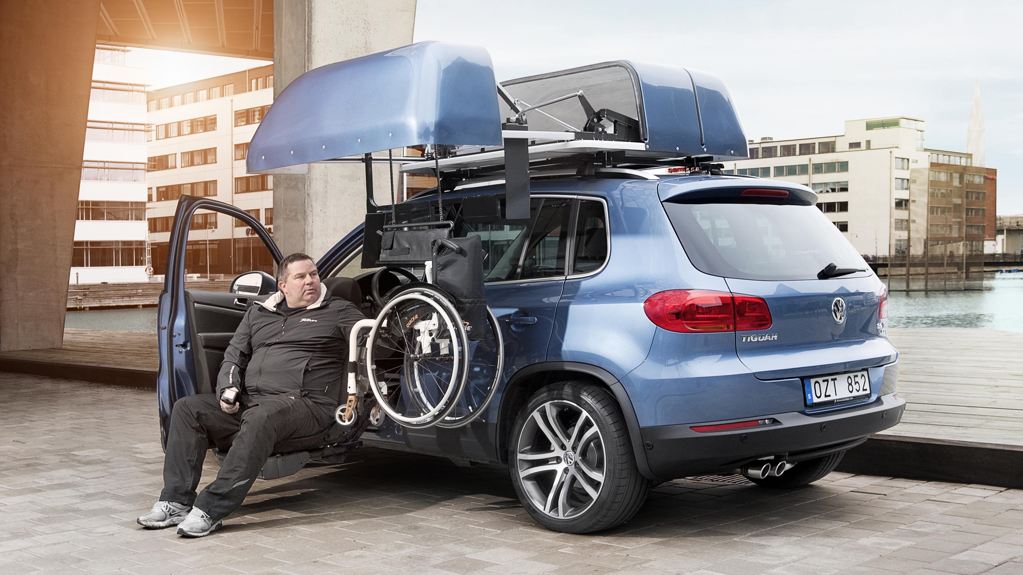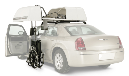 Sistema elettrico per il caricamento della carrozzina sul tetto della vettura dal lato guida Braun Chair Topper, completo di contenitore in vetroresina interamente chiuso e stagno. Il comparto in fibra di vetro resistente alle intemperie pesa 55 Kg. e può essere montato sulla maggior parte dei veicoli. Il peso totale, compresa la carrozzina, non supera i 75 Kg. Alcune caratteristiche del prodotto: