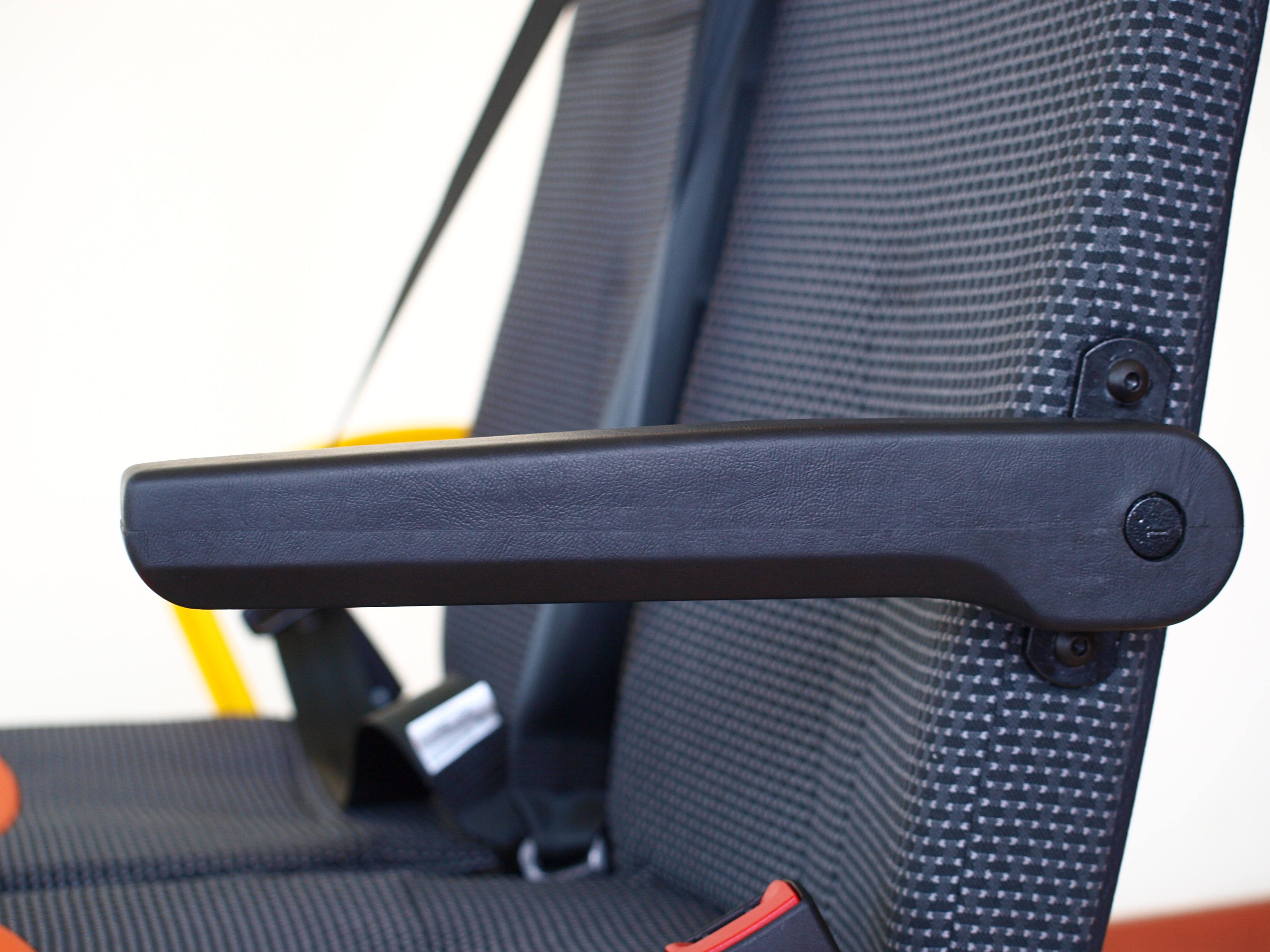 Sedile monoposto categoria M1 Ergobus con seduta alzabile e schienale fisso, poggiatesta e cintura a 3 punti integrata. Inclusi basamenti (a scelta tra le misure 215, 265, 280mm). Disponibili come accessori: bracciolo rivestito e non, poggiapiedi, retina porta oggetti, tavoletta. Possibilità di rivestimento in scai a scelta del cliente. Possibilità di abbinamento con basamenti per sgancio rapido.